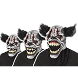 California Costumes , A precarious punchline awaits the unsuspecting jokers with our Last Light the Clown Ani-Motion Mask. This evil clown will deliver one hell of a monster act! The Last Laugh Clown Ani-Motion Mask is an over-the-head scary clown mask with curly black synthetic hair tufts at each side, black nose and lips, sharp fang teeth and realistic mouth movements. The scary clown action mask is equipped with Ani-Motion technology that allows the mouth and lips to move when you do. This is one circus act where there won't be any clowning around. The Last Laugh Clown Ani-Motion Mask is an ideal accessory for your evil and scary clown costume. One size fits most adults. This is an officially licensed Ani-MotionTM product. (Read More)