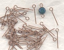 abeadstore , Itty bitty eyepins - just enough wire to insert a 6mm bead (shown) and make a loop. Brass base, durable antique copper finish. Pins are about 0.6 inches (16mm) long. They are a bit thinner than a 22 gauge wire at 0.6mm thick. You'll typically find about 50-55 pins per 0.1 ounces. Sold by weight - 0.1 ounce packages.