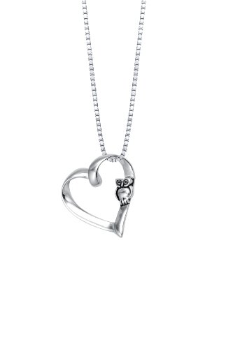 Amazon.com Collection 441489, This sterling silver pendant brings a fun twist to the classic open-heart design with a owl-shaped accent. Resting along the bottom of an included 18-inch box chain is a classic open-heart shaped pendant that is crafted in 925 sterling silver. The pendant is accented along the right side by an owl shape, a symbol of wisdom. The necklace is finished with a spring-ring clasp that allows it to stay secure.