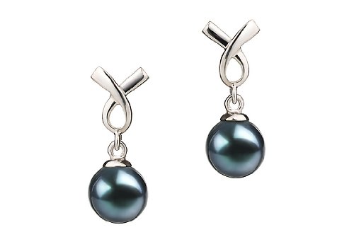 PearlsOnly Riley Black, Have some fun with these high-fashion drop style pearl earrings, and you'll be sure to make a statement they won't soon forget. These 6 - 7 mm black Japanese Akoya pearls are dangling from sterling silver and white gold settings that create an interesting 'twist' for all of your admirers to see. Such high quality pearls are very round, exhibit amazing luster, and will last for several years with the correct wear and care. You'll be taking advantage of the perfect combination of classic jewels and modern design with these pretty baubles.Pair them with your favorite pearl or silver necklace to dress them up or down as you please, and they'll become your ideal choice for everyday wear. Your earring set will be carefully packed and shipped to you in an elegant velvet lined box and accompanied by lots of free extras (please see below).And, if you choose, we would be delighted to gift wrap your earring set and turn this earring set into an unforgettable gift.